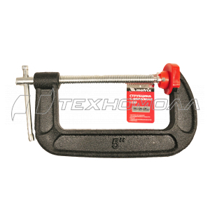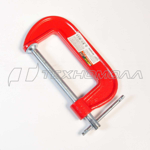 - G-образная. Имеет цельнолитую конструкцию, а на нижней губе располагается подвижный прижимной винт. Это стандартная струбцина, применяемая для большинства типов работ. Её преимуществами являются удобство в использовании, отсутствие люфтов губ. Обычно используется при работе с громоздкими материалами.