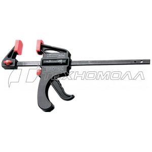 - Быстрозажимная (быстросъёмная). Состоит из металлической шины с установленными на ней подвижной и фиксированной губками. Быстрозажимная струбцина отличается малой массой, удобством в транспортировке, равномерным распределением зажимного усилия. Она может работать как с небольшими, так и с крупногабаритными деталями.