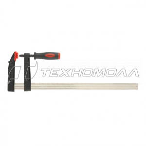 - F-образная. Состоит из металлической шины с закреплёнными на ней губками: подвижной с регулировочным винтом и неподвижной. Это универсальные струбцины, которые способны работать с деревянными заготовками разной толщины. Могут оснащаться зажимами для простого использования (Light duty) и для сложных работ (Heavy duty).